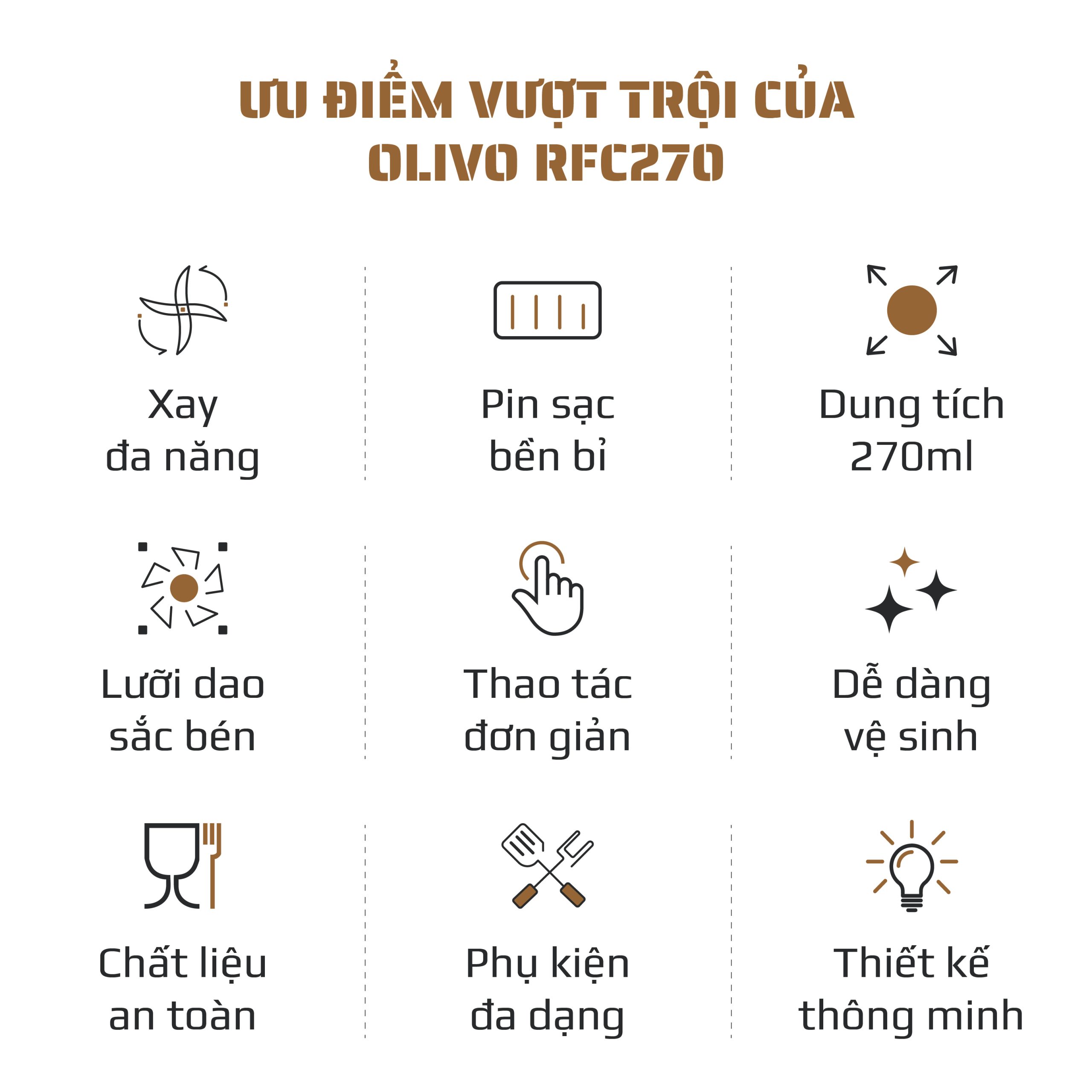 1. Tên sản phẩm: Máy xay thực phẩm đa năng sạc pin OLIVO RFC270