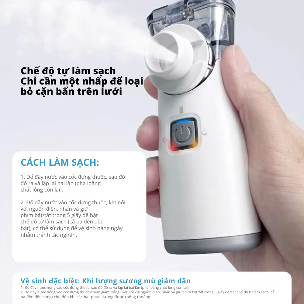 - Vệ sinh kỹ ngăn thuốc, mặt nạ/ống ngậm sau mỗi lần sử dụng để đảm bảo an toàn và độ bền cho máy.