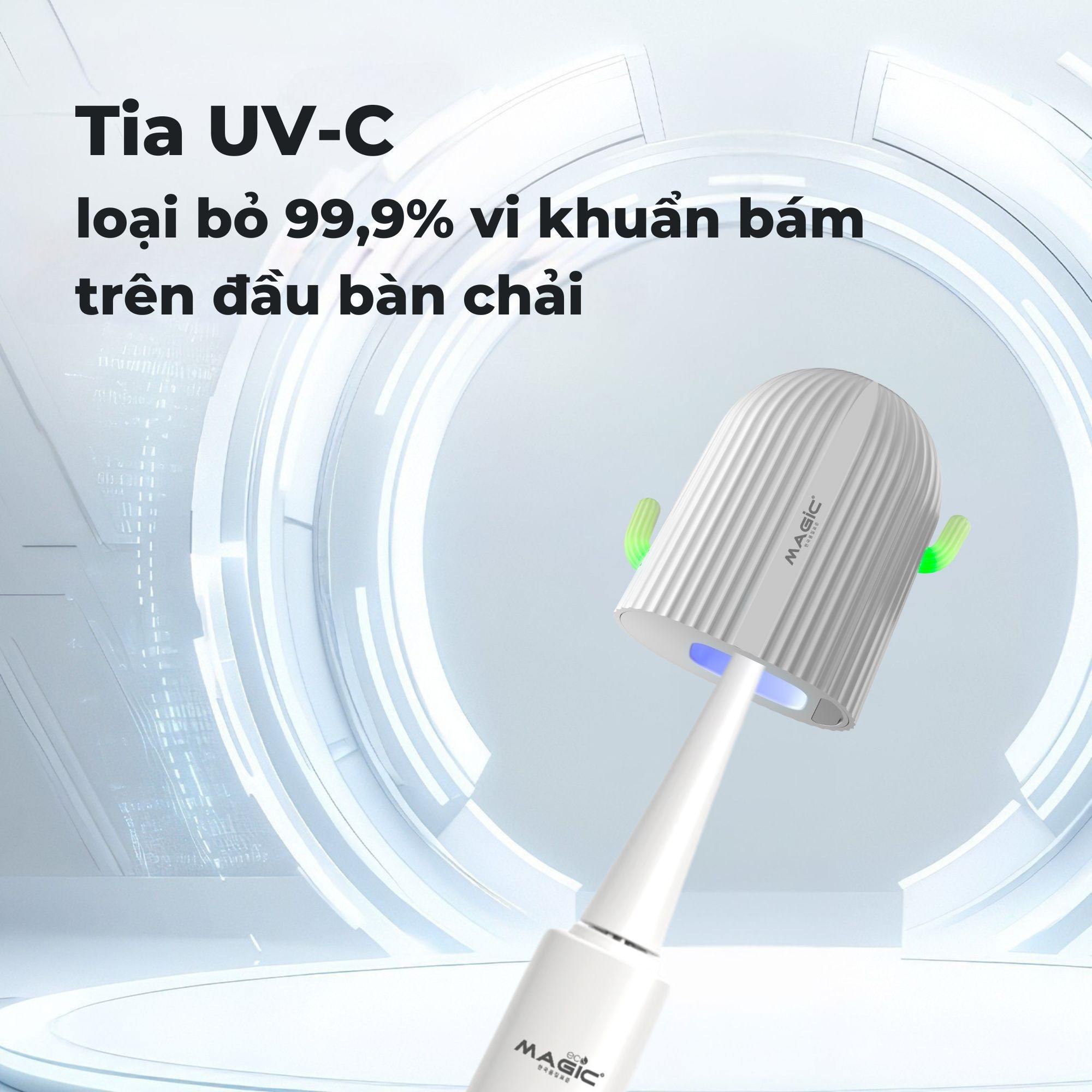 Tia UV-C: loại bỏ 99,9% vi khuẩn bám trên đầu bàn chải