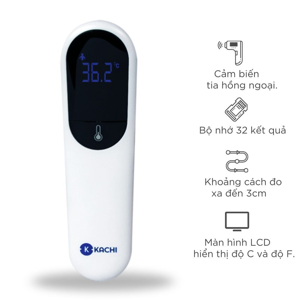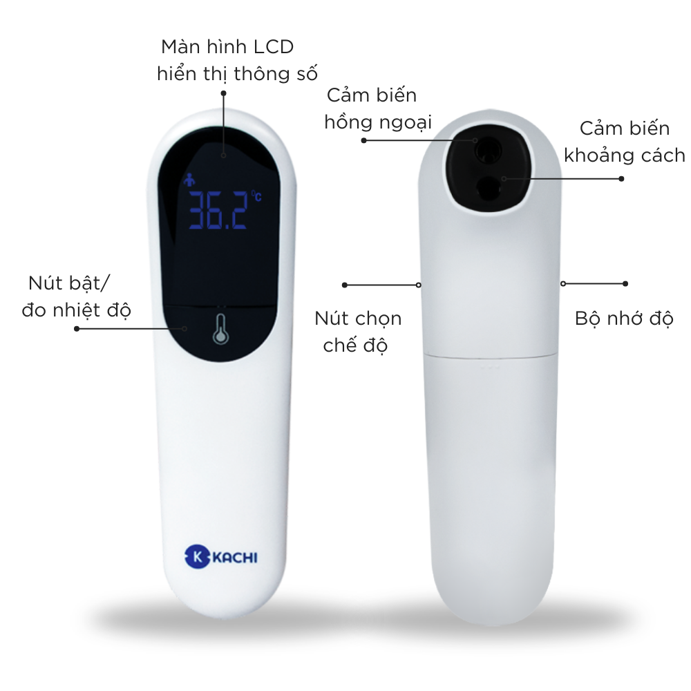 - Máy đo nhiệt kế Kachi là một chiếc nhiệt kế đo nhiệt độ cơ thể và môi trường cực kỳ thông minh, nhờ cảm biến cực nhạy được trang bị ngay trên máy.