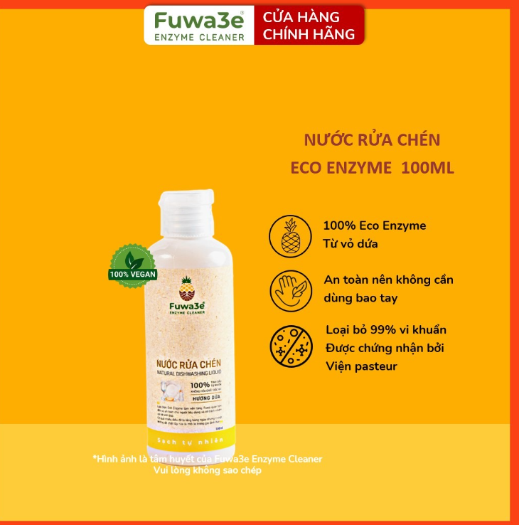 Nước rửa chén Enzyme Fuwa3e chính là giải pháp giải quyết vấn đề đó. Fuwa3e tiên phong ứng dụng Eco-enzyme, được lên men từ vỏ dứa, tạo ra Enzyme Bromelain và dung dịch có tính axit tự nhiên. Điều này giúp tẩy rửa và làm sạch vết bẩn cũng như dầu mỡ một cách hiệu quả.