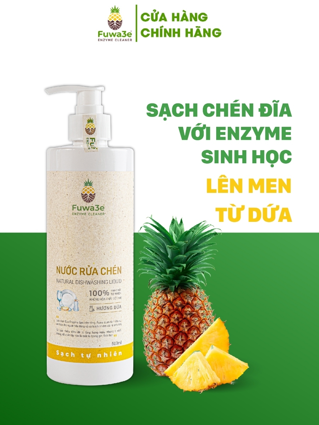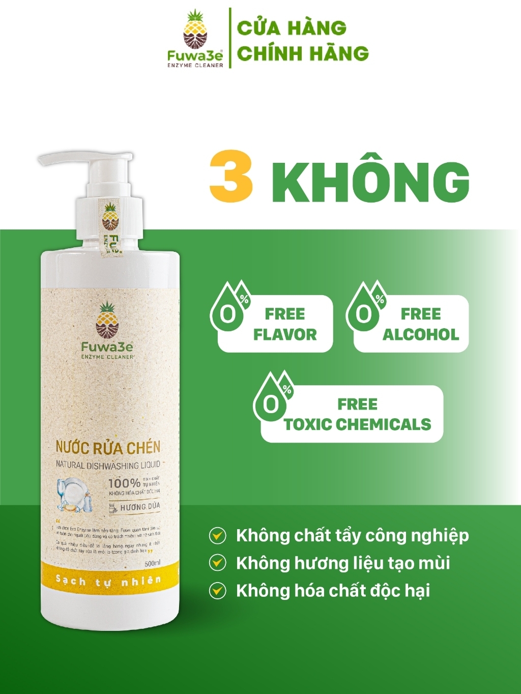 Nước rửa chén FUWA3E 90% Enzyme sạch X2 3.8L