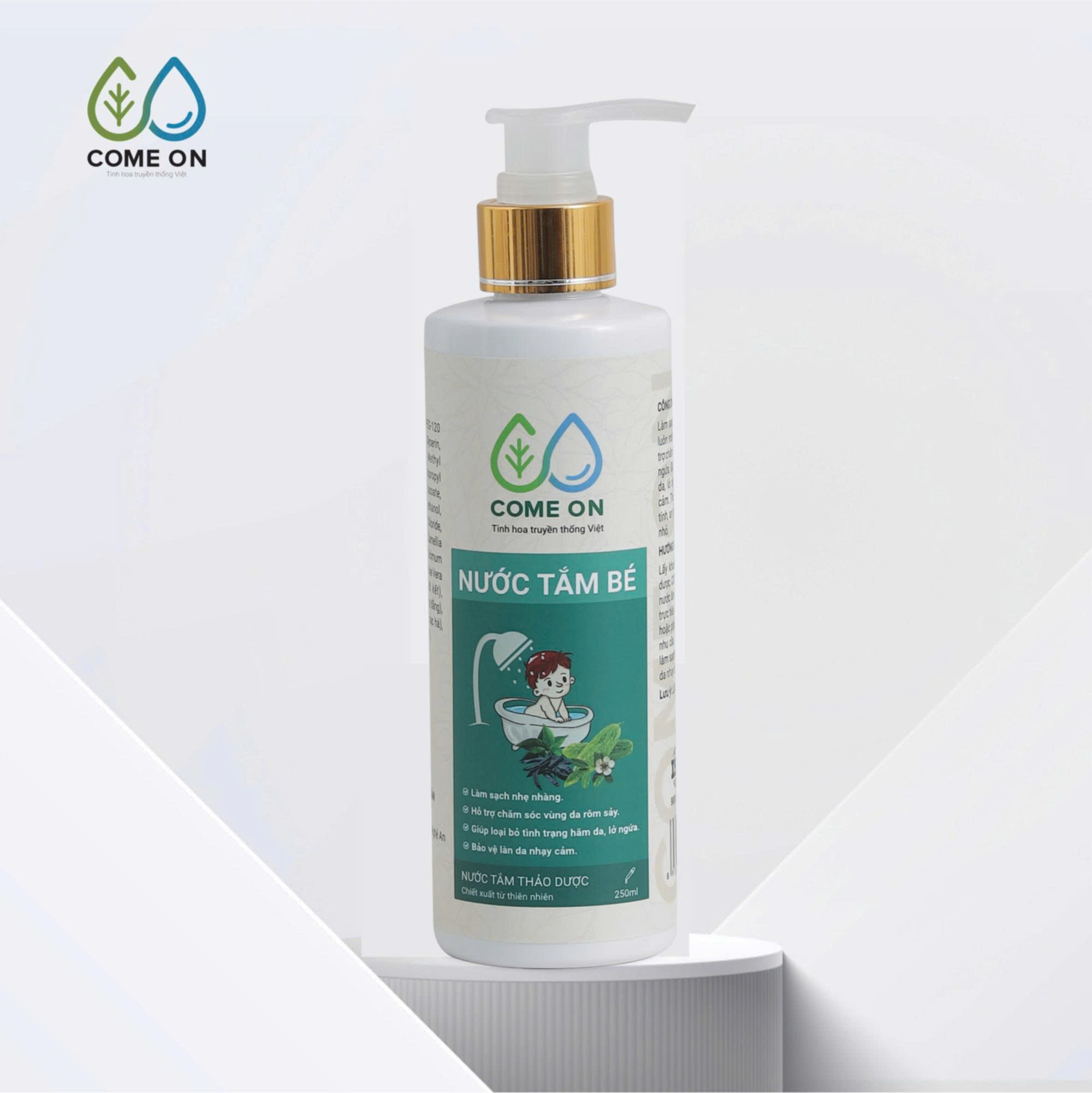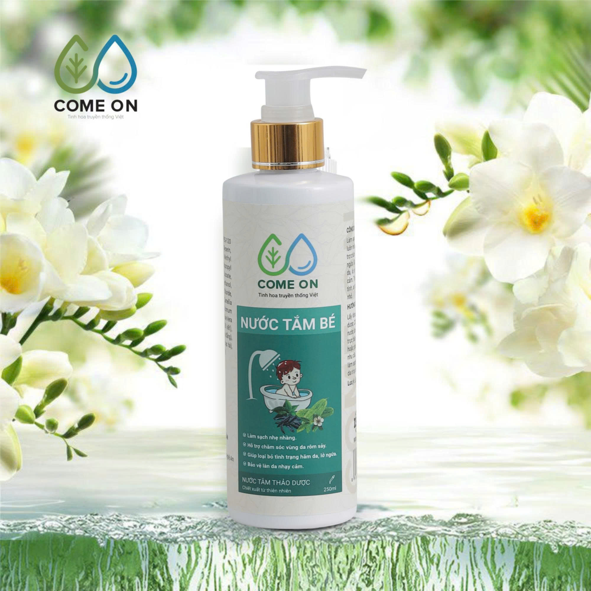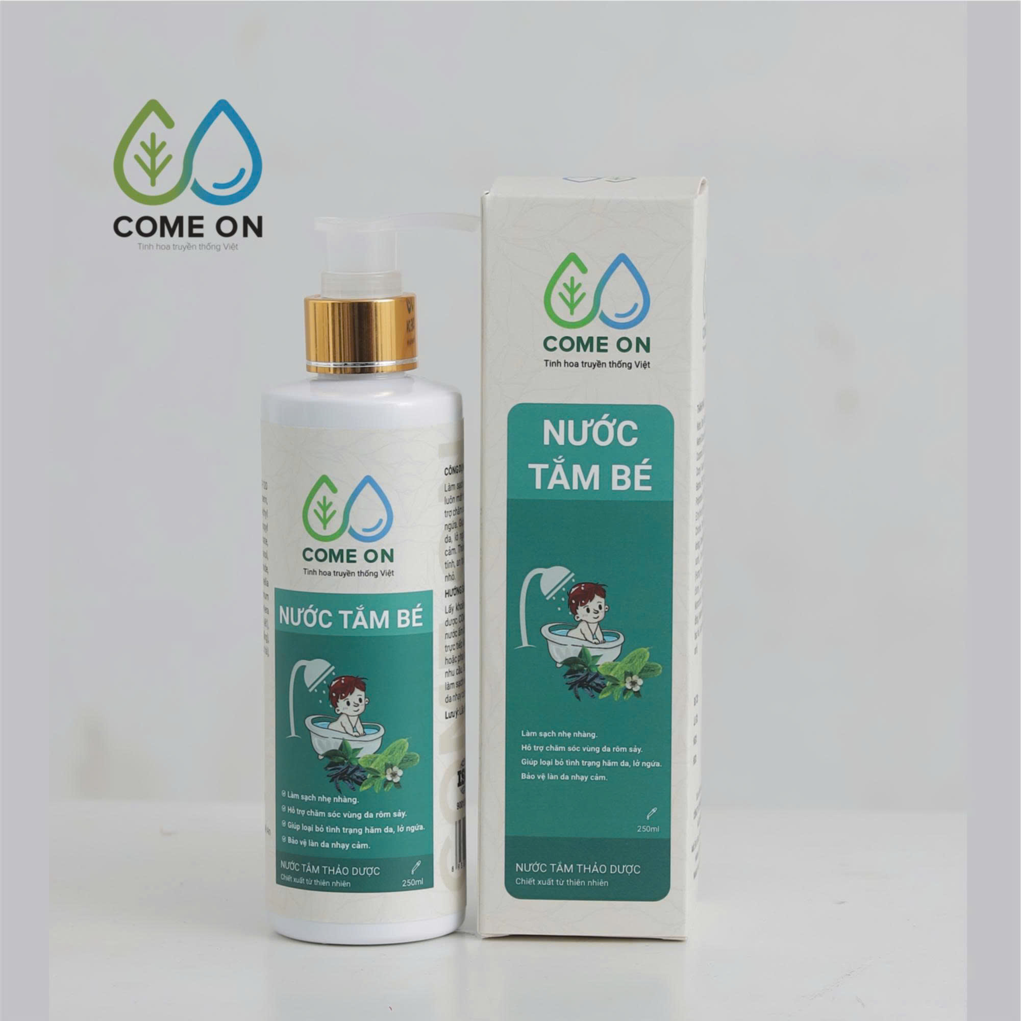 Tên sản phẩm: Nước tắm bé thảo dược COME ON làm sạch, mát da, ngừa rôm sảy 250ml