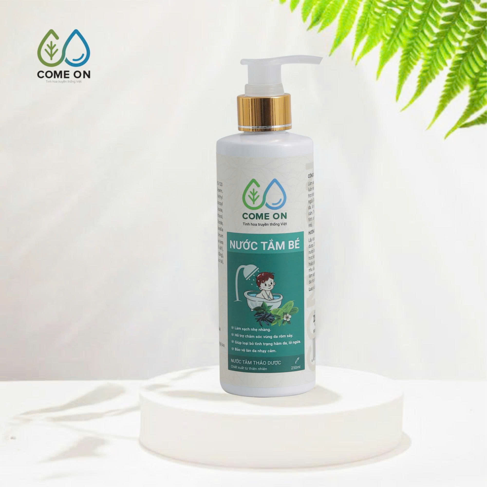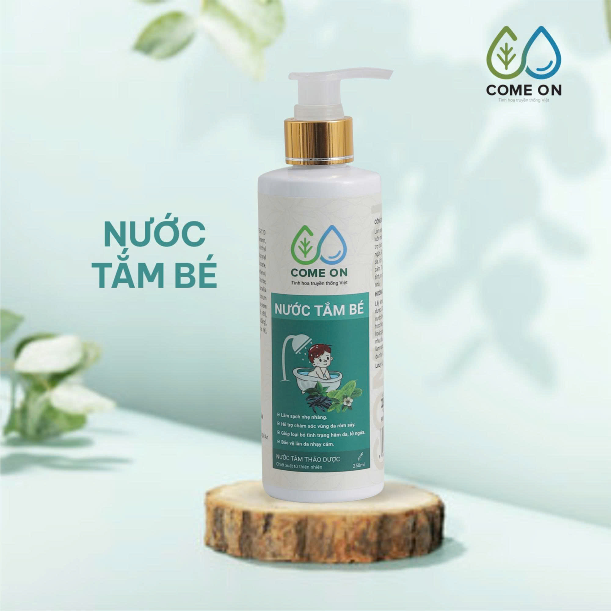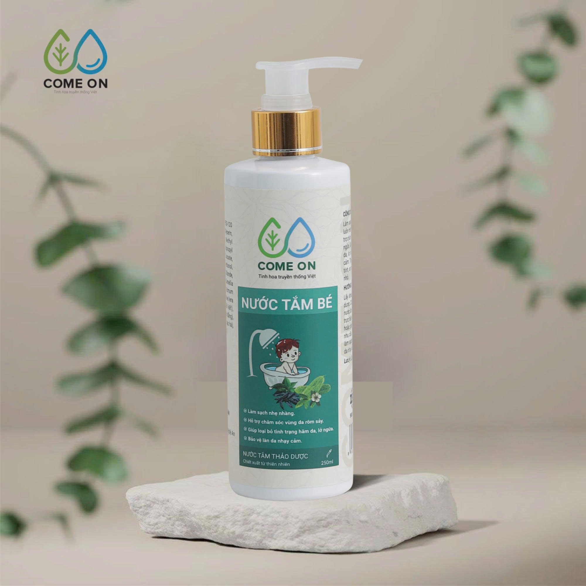 Tên sản phẩm: Nước tắm bé thảo dược COME ON làm sạch, mát da, ngừa rôm sảy 250ml