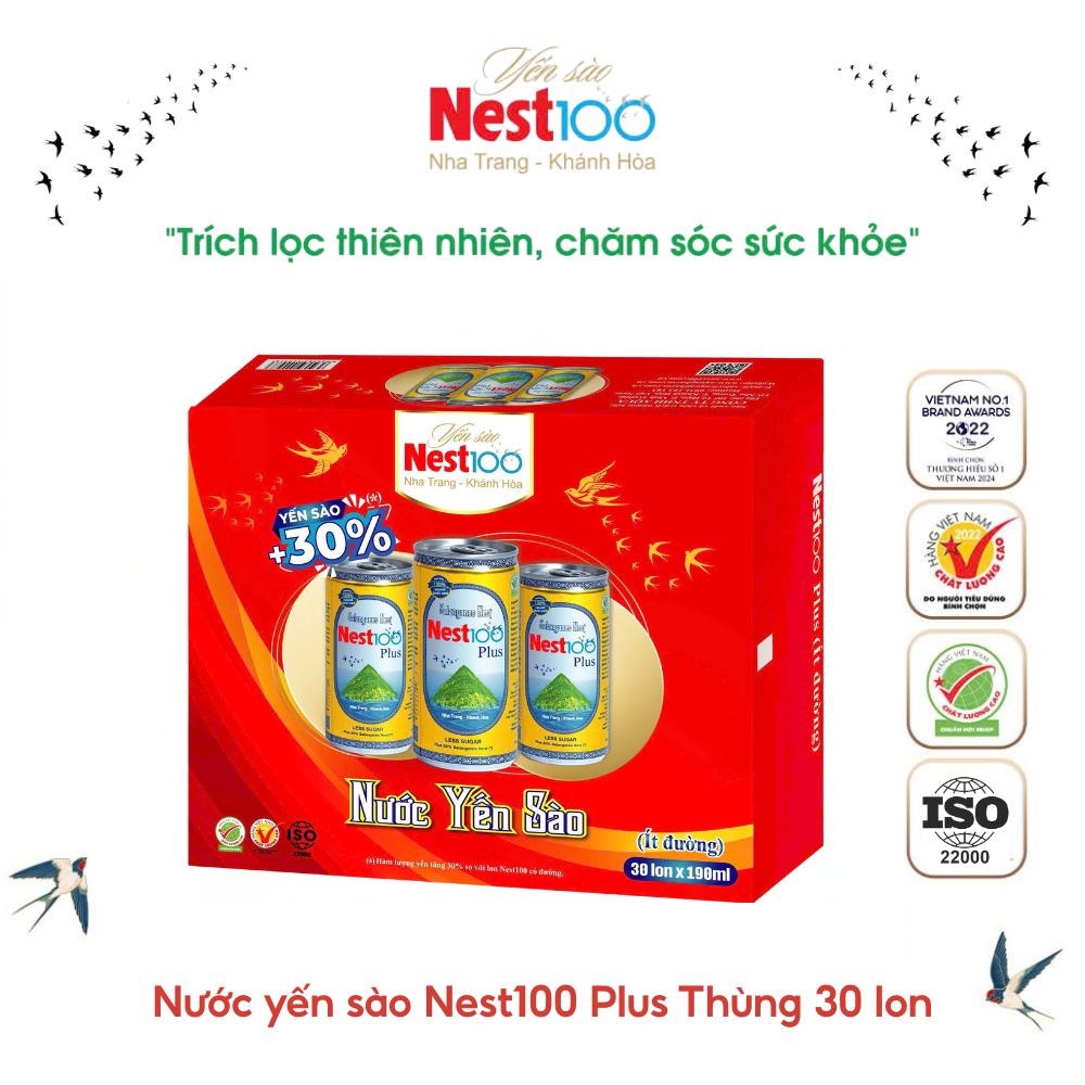 Nước Yến Sào NEST100 PLUS được chế biến từ yến sào thiên nhiên, chứa các acid amin và nguyên tố vi lượng tốt cho sức khỏe.
