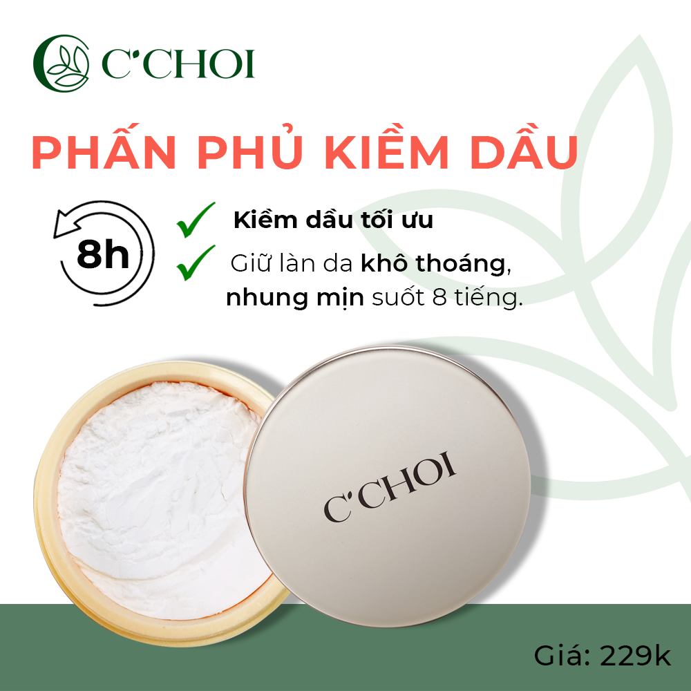 C’Choi Mineral Velvet Film Powder là phấn phủ dạng bột siêu mịn, không màu của thương hiệu Mỹ phẩm xanh C’Choi. Sản phẩm có nguồn gốc từ khoáng chất tinh khiết, giúp kiềm dầu và giữ bề mặt lớp trang điểm luôn khô thoáng. Lớp phấn nhẹ tênh tạo hiệu ứng nhung mịn, trong suốt tự nhiên, giúp làn da rạng rỡ suốt nhiều giờ.