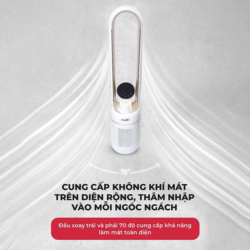 • Góc quay rộng: 70 độ làm mát được diện rộng.
