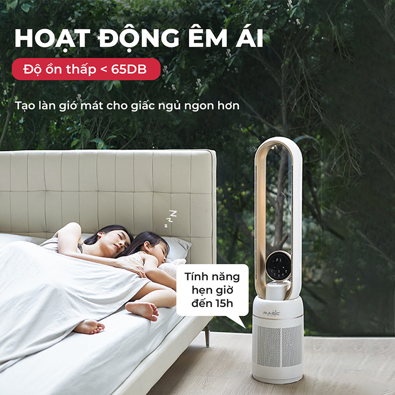 Quạt không cánh lọc không khí với độ ồn thấp dưới 65dB mang lại nhiều lợi ích, bao gồm: