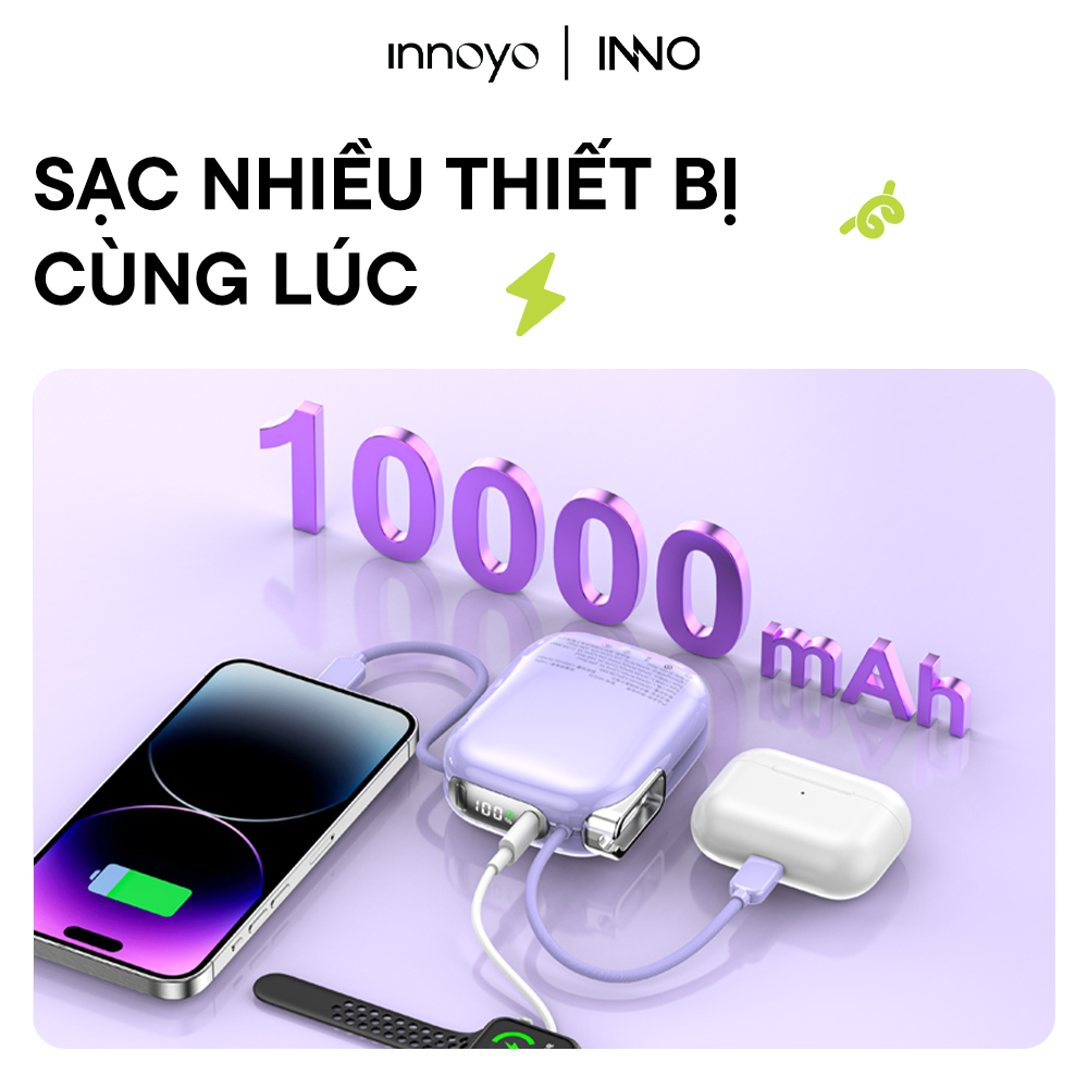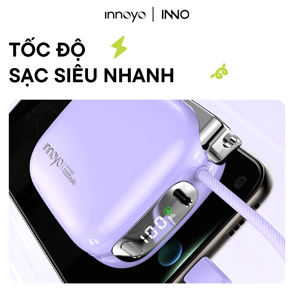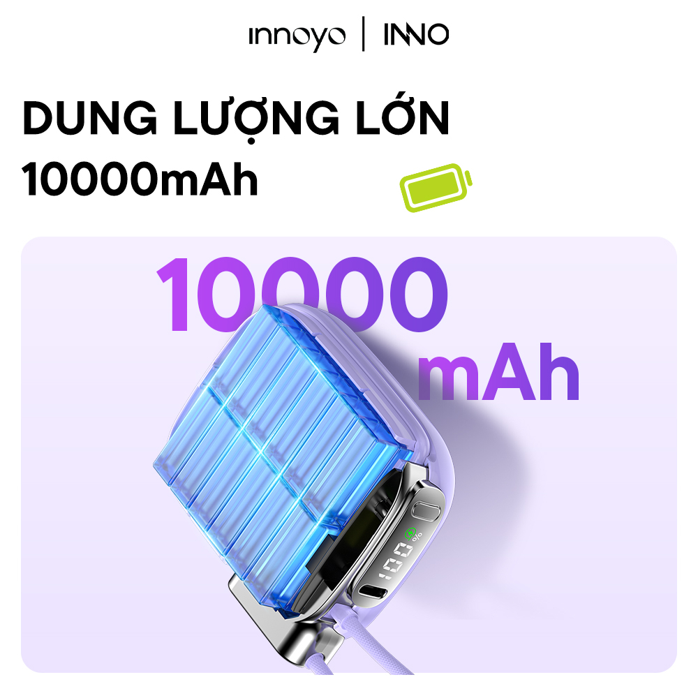Trong khi nhiều sạc dự phòng cồng kềnh, dây nhợ rối rắm và tốc độ sạc “rùa bò”, thì InnoPower Wired Charging 10000mAh lại chọn một hướng đi tinh gọn và thông minh hơn. Sản phẩm mang đến trải nghiệm “sạc siêu nhanh – gọn nhẹ mang theo”.