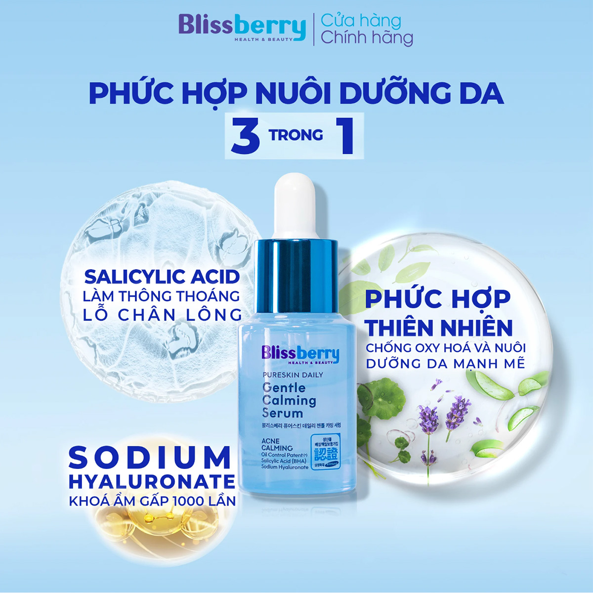 Serum cấp ẩm dịu da kiểm soát bã nhờn Blissberry 15ml có khả năng cấp ẩm, làm dịu da, kiểm soát bã nhờn cũng như giảm mụn, kháng viêm tốt nhờ các chiết xuất thiên nhiên.