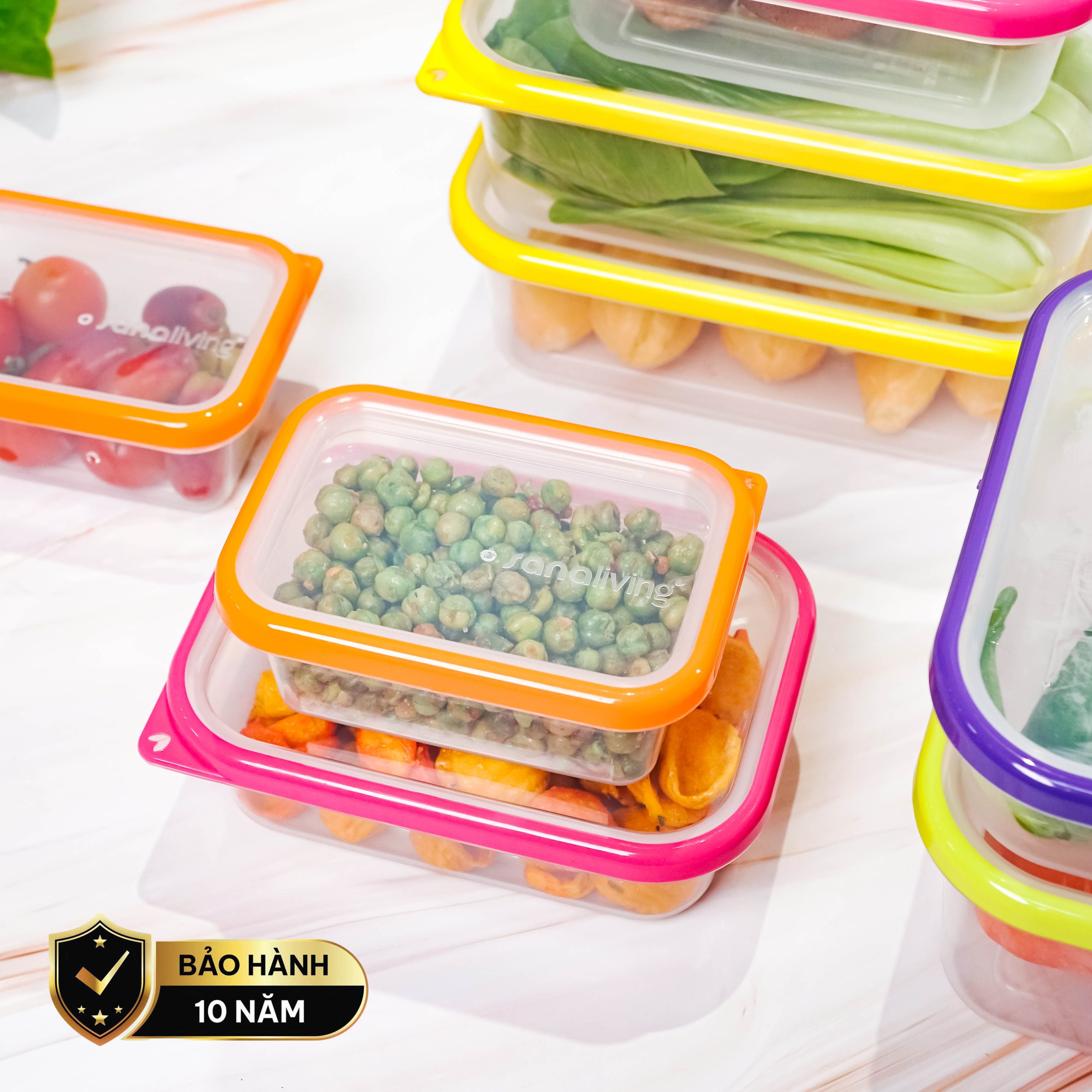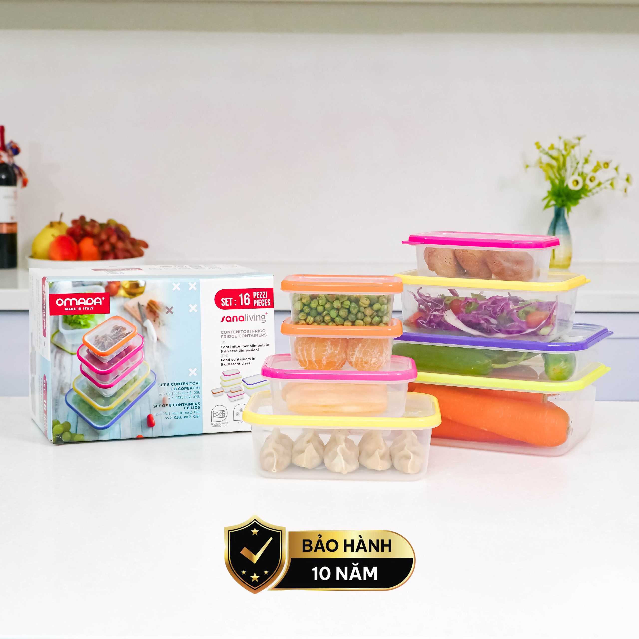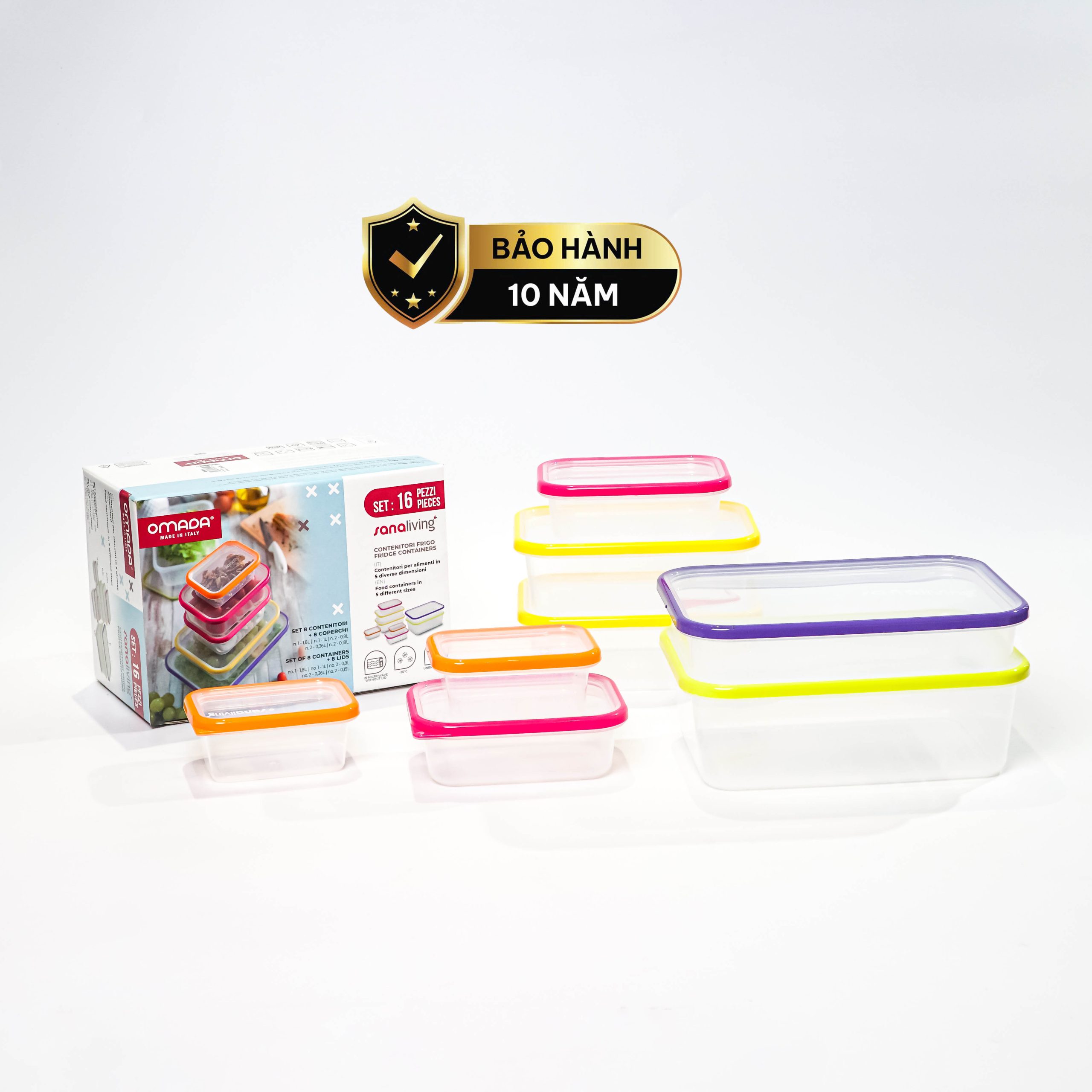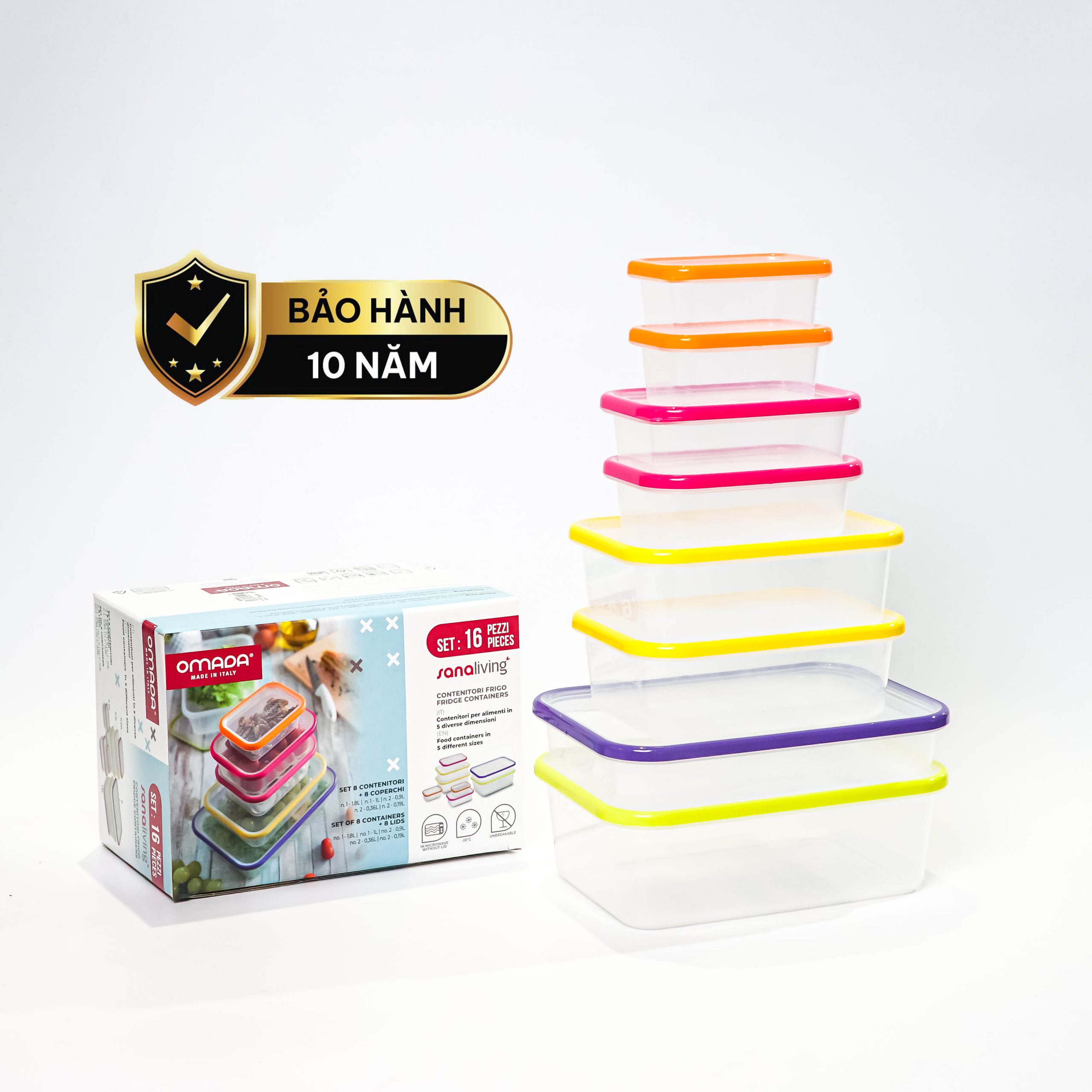 Set 8 hộp đựng thực phẩm kháng khuẩn Sanaliving cao cấp OMADA – Model: S2336CA