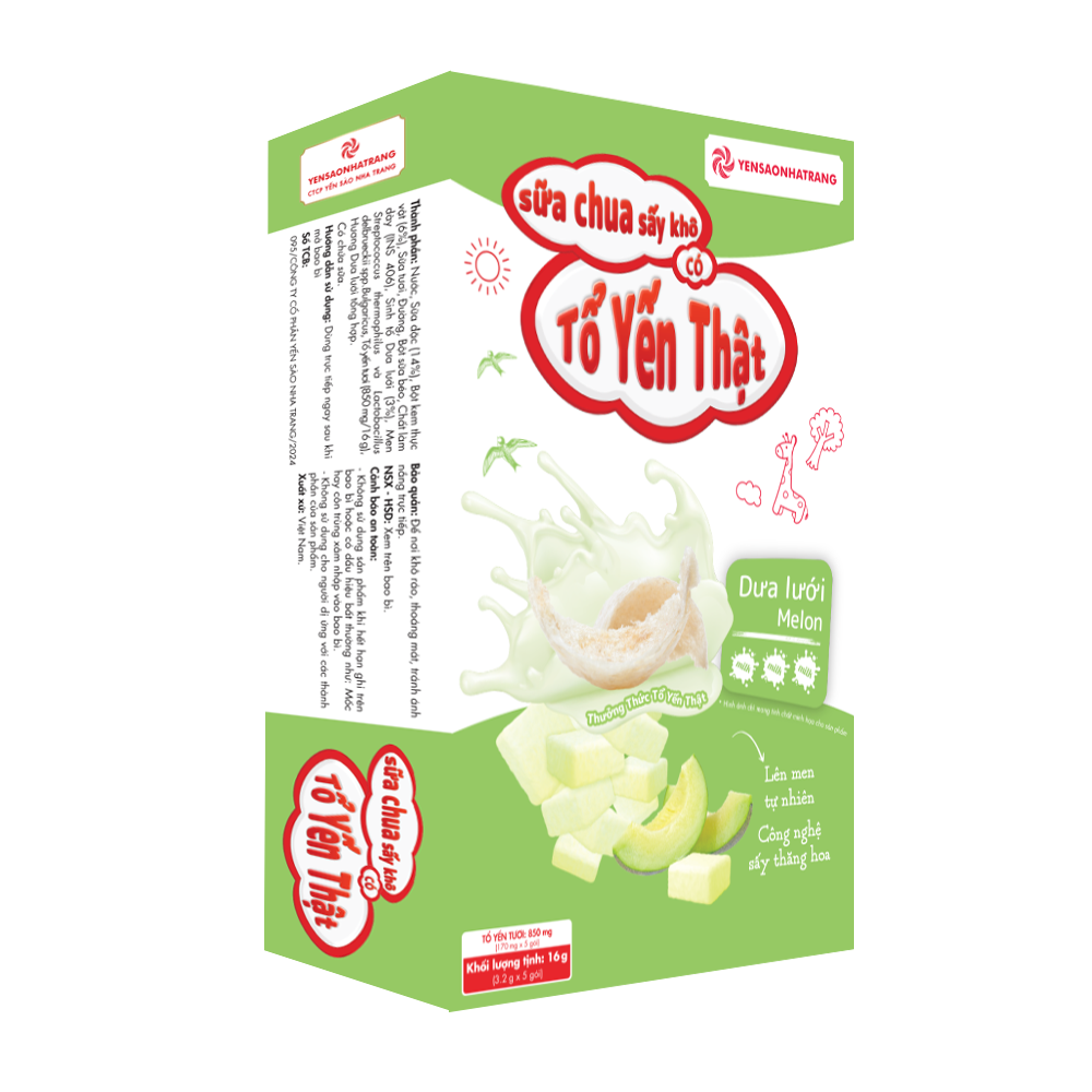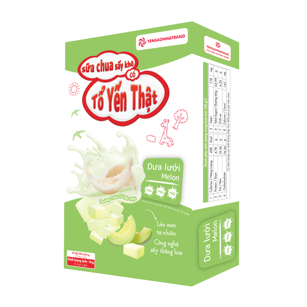 Sữa chua sấy khô có tổ yến thật – Vị dưa lưới (Hộp 5 gói)