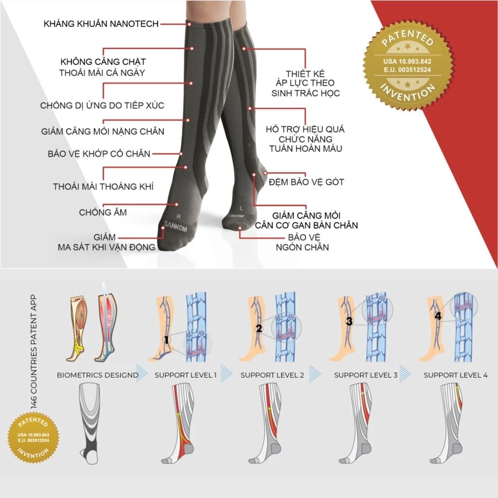 Tất( vớ) y khoa chống suy giãn tĩnh mạch SANKOM – Giải pháp hàng ngày giảm vấn đề giãn tĩnh mạch.