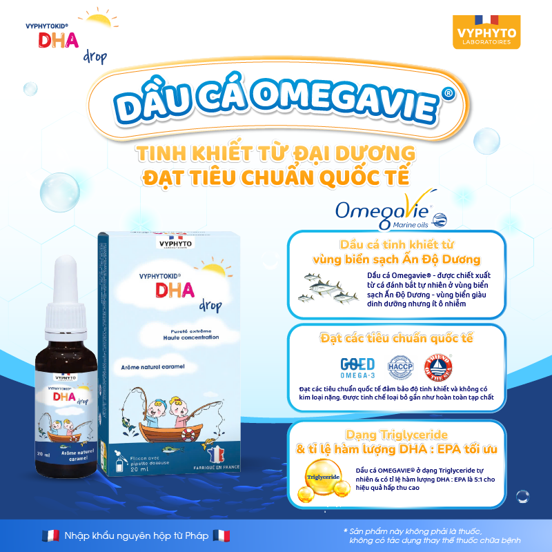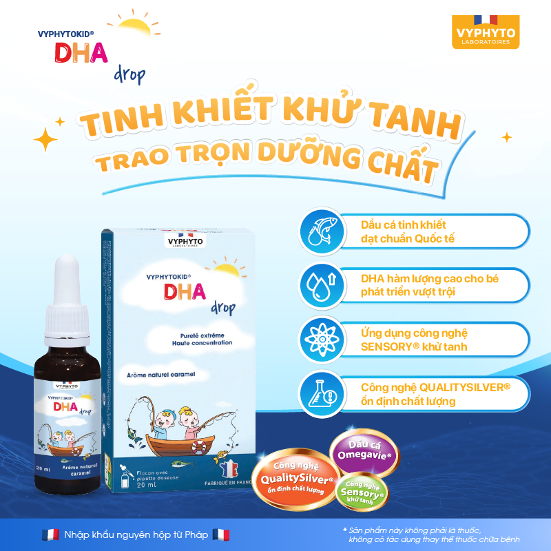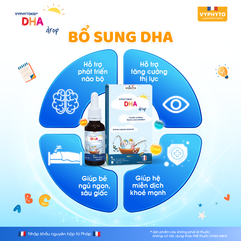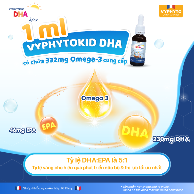 Thực phẩm bảo vệ sức khoẻ VYPHYTOKID DHA drop hỗ trợ bổ sung DHA tinh khiết, hàm lượng cao