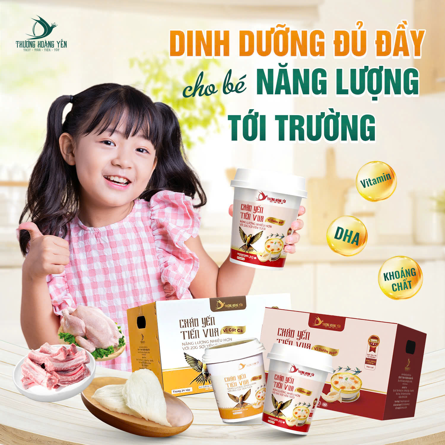 +THÀNH PHẦN Cháo yến vị sườn non: Gạo được nấu bung sấy thăng hoa, 20gram Yến tươi, 1 gói cốt gà cô đặc trong 3 giờ, 1 gói dầu., 10gr sườn non hầm rau củ.