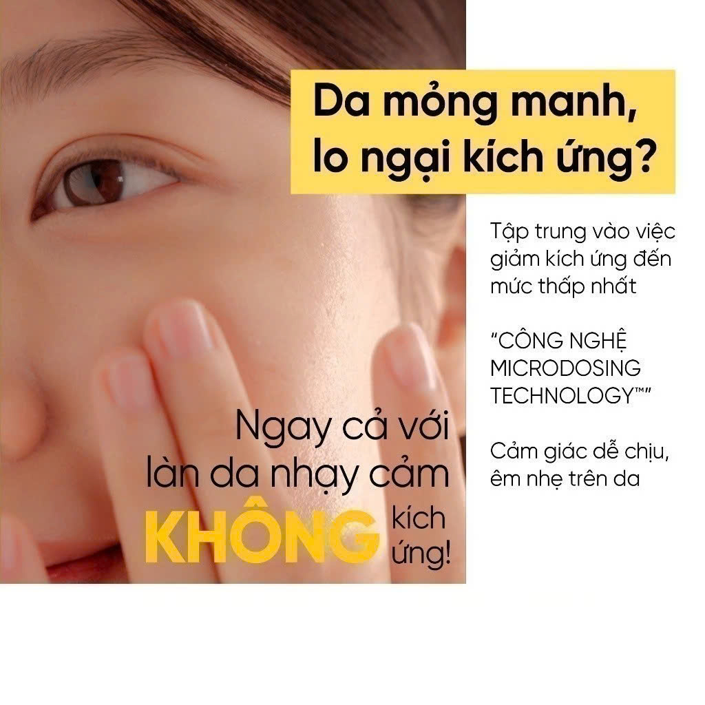 – Công nghệ Microdosing cơ từ các loại tẩy tế bào chết bằng cách sử dụng phương pháp nồng độ thấp nhưng vẫn giữ được hiệu quả chăm sóc da (AHA & PHA)