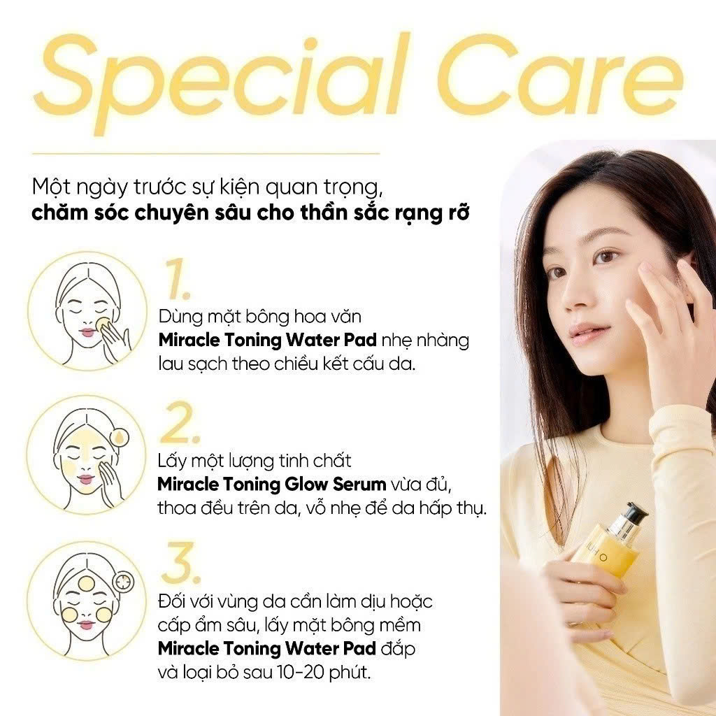 Tinh chất sáng da căn bóng chứa AHA/PHA giúp da săn chắc rạng rỡ Miracle Toning Glow Serum da bạn luôn săn chắc, rạng rỡ và mọng nước.