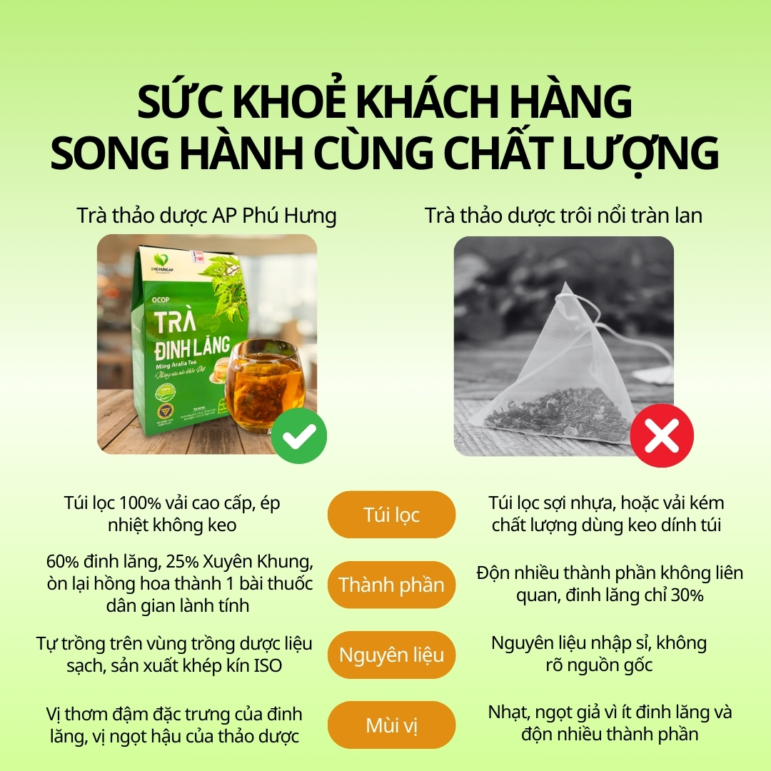 4.Thành Phần: đinh lăng 60%, xuyên khung 25%, hồng hoa 7%, cỏ ngọt 5% và một số thảo dược khác
