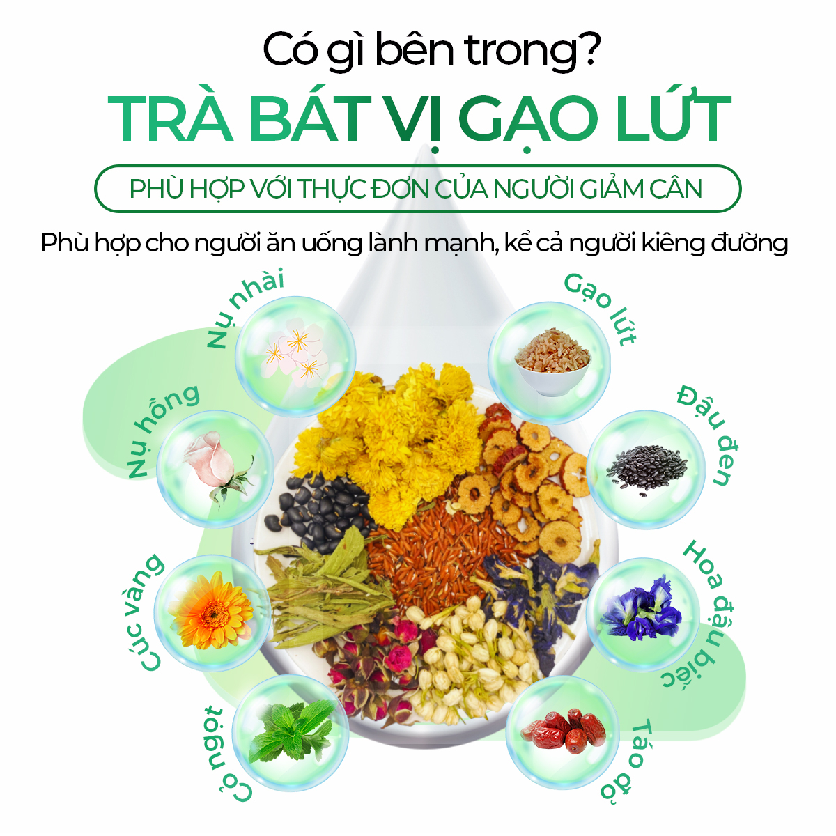 Trà Gạo Lứt 8 Vị Sunbeleaf – Trà Thảo Mộc Thanh Lọc- Túi Zip 20 Gói