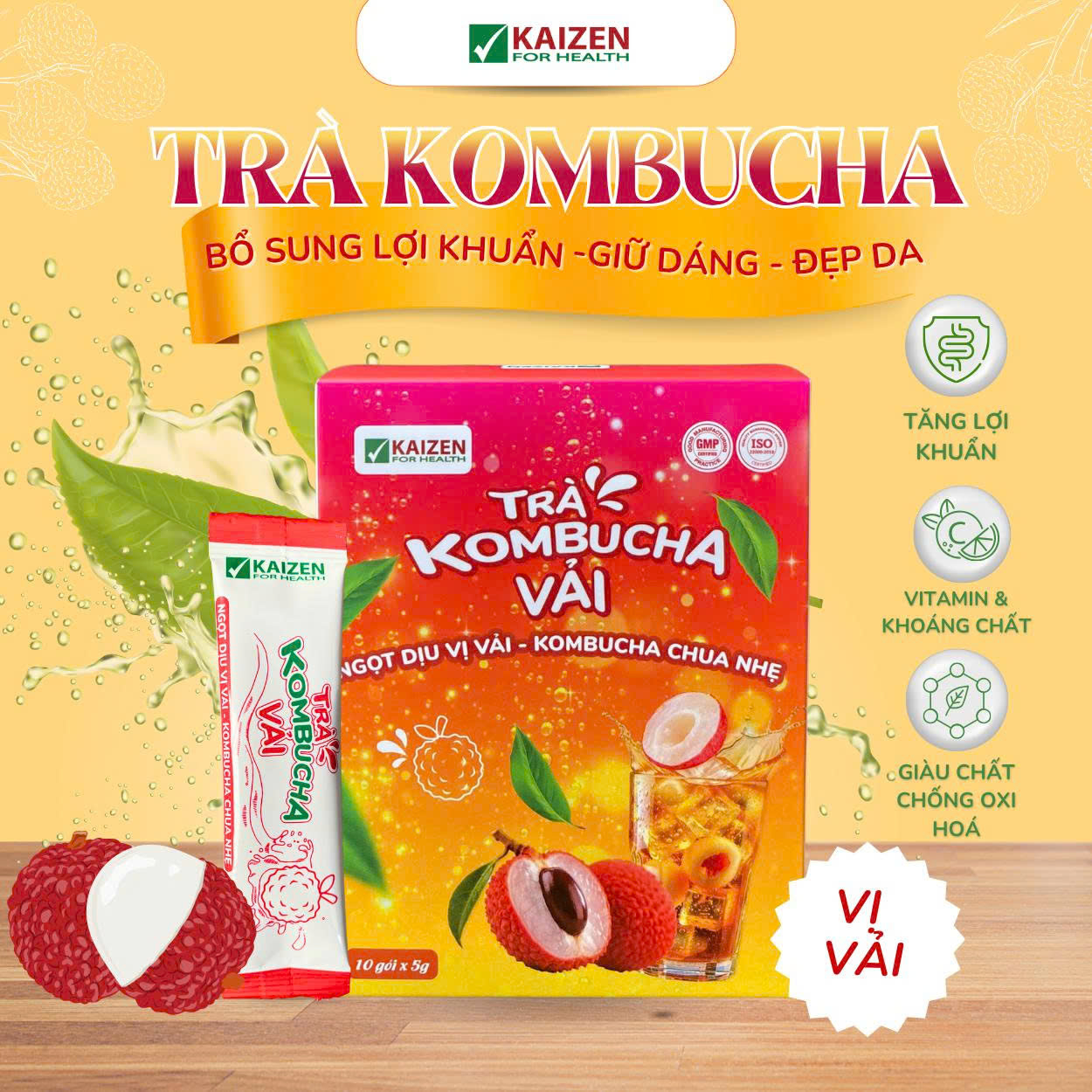 1. Tên sản phẩm: Trà Kombucha Vải