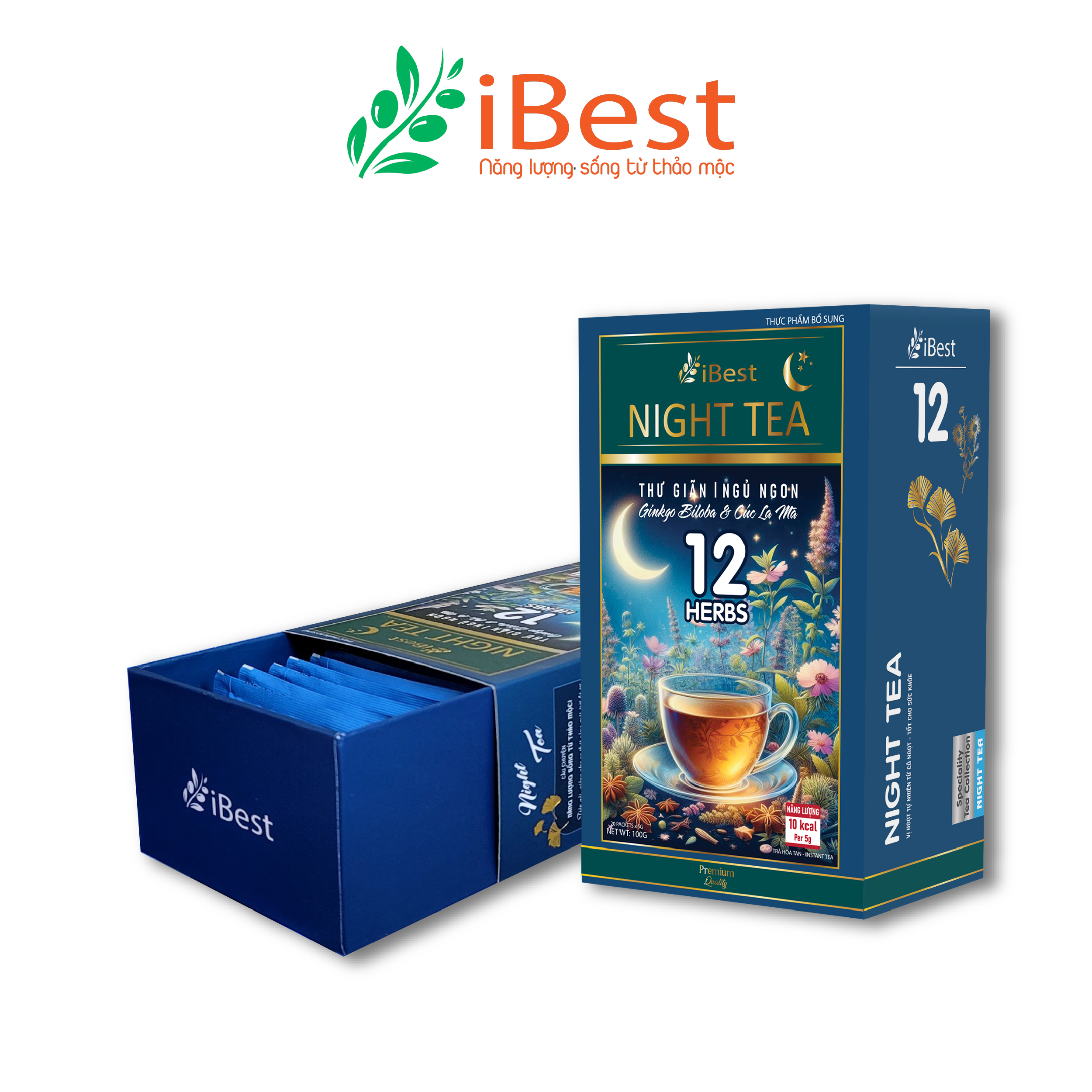 iBest Energy Tea là trà hòa tan 12 thảo mộc thiên nhiên giúp thư giãn, giảm căng thẳng, an thần, ngủ ngon.