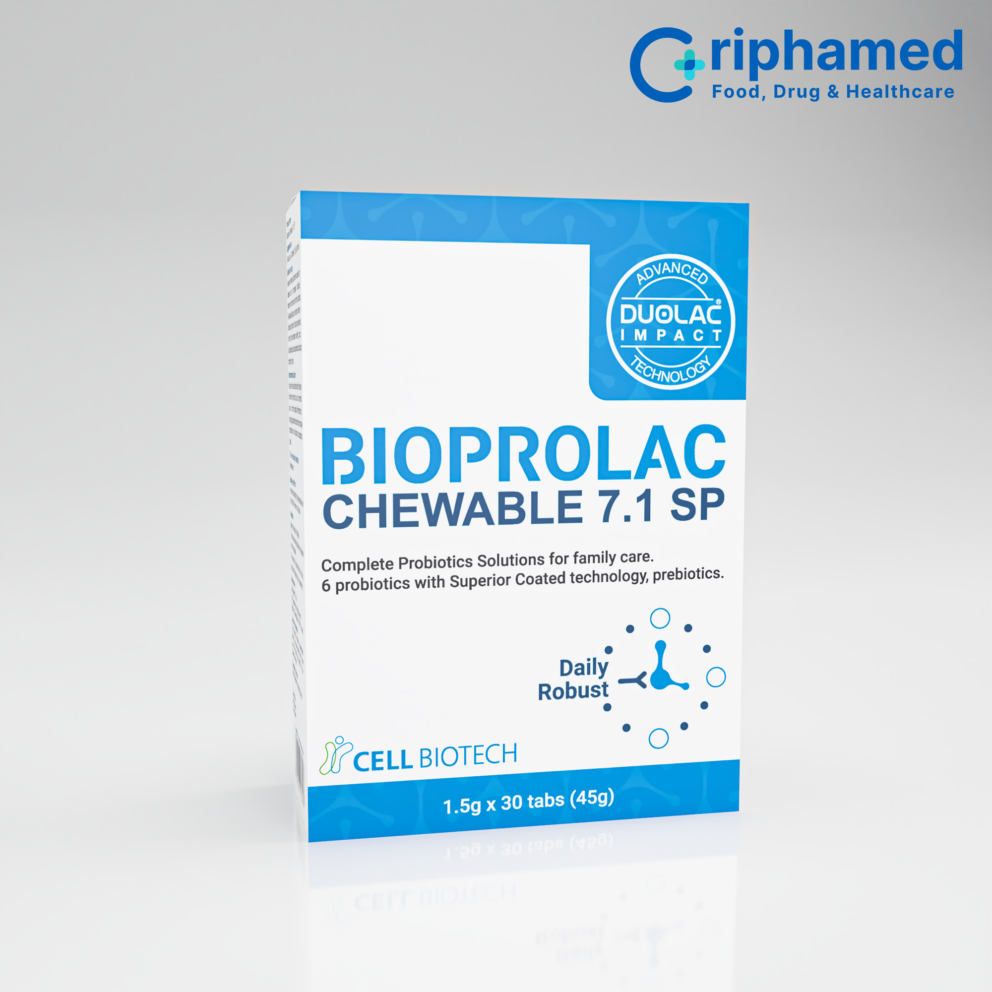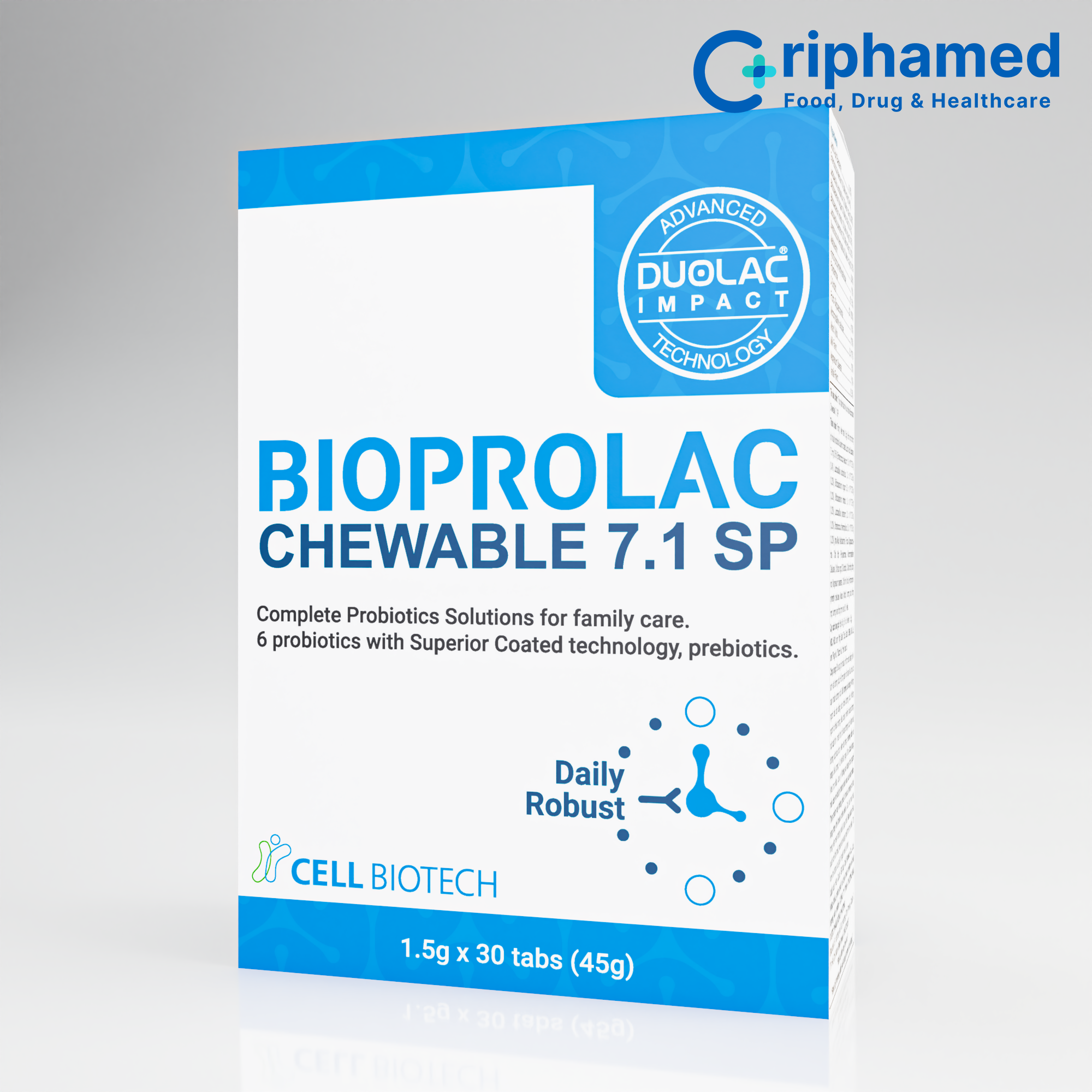 Công nghệ bao kép thế hệ thứ 4 – DUOLAC IMPACT tiên tiến hiện nay, được cấp bằng sáng chế toàn cầu. Đã được chứng minh lâm sàng giúp lợi khuẩn sống sót qua axit dạ dày và muối mật. Lợi khuẩn phóng thích ngay tại đích ruột, phát huy tác dụng nhanh chóng (Logo DUOLAC IMPACT ở góc trên bên phải hộp).