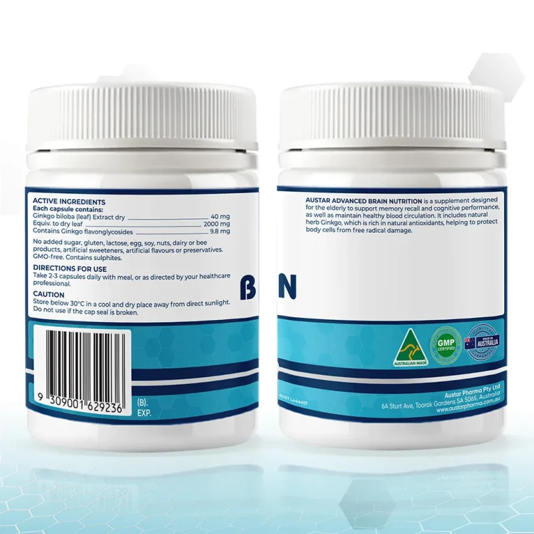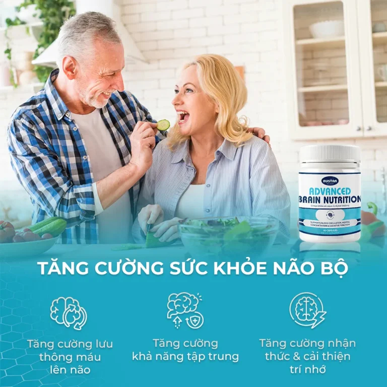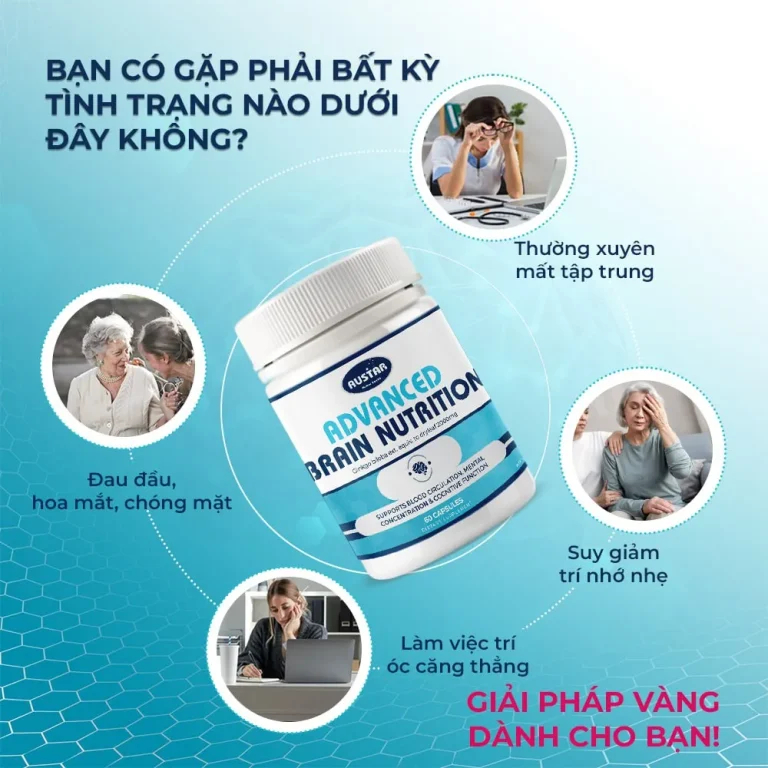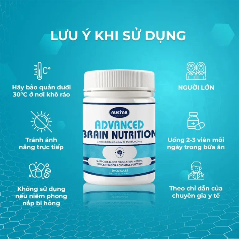 Viên uống bổ não Austar Advanced Brain Nutrition là sản phẩm hỗ trợ sức khỏe não bộ được thiết kế dành cho người trưởng thành với thành phần chính Ginkgo Biloba chiết xuất từ cây bạch quả chứa hàm lượng chất chống oxy hóa cao giúp cải thiện tuần hoàn máu não, tăng cường trí nhớ và khả năng tập trung, bảo vệ cơ thể không bị tổn thương bởi các gốc tự do.