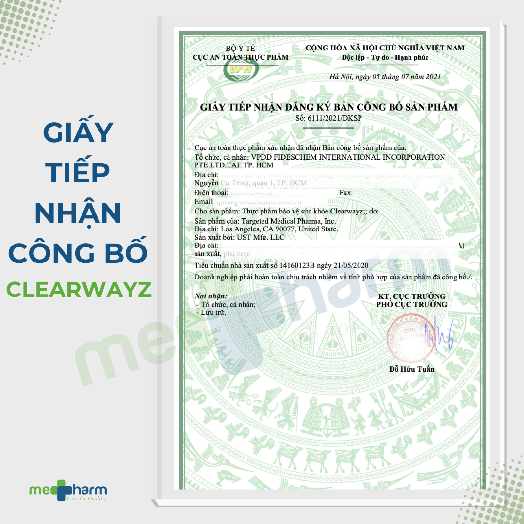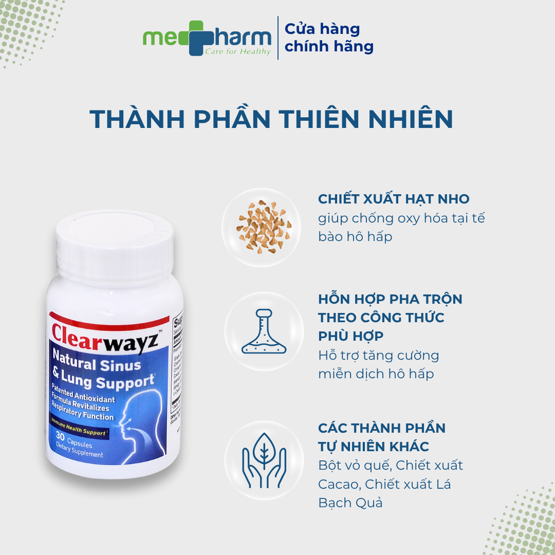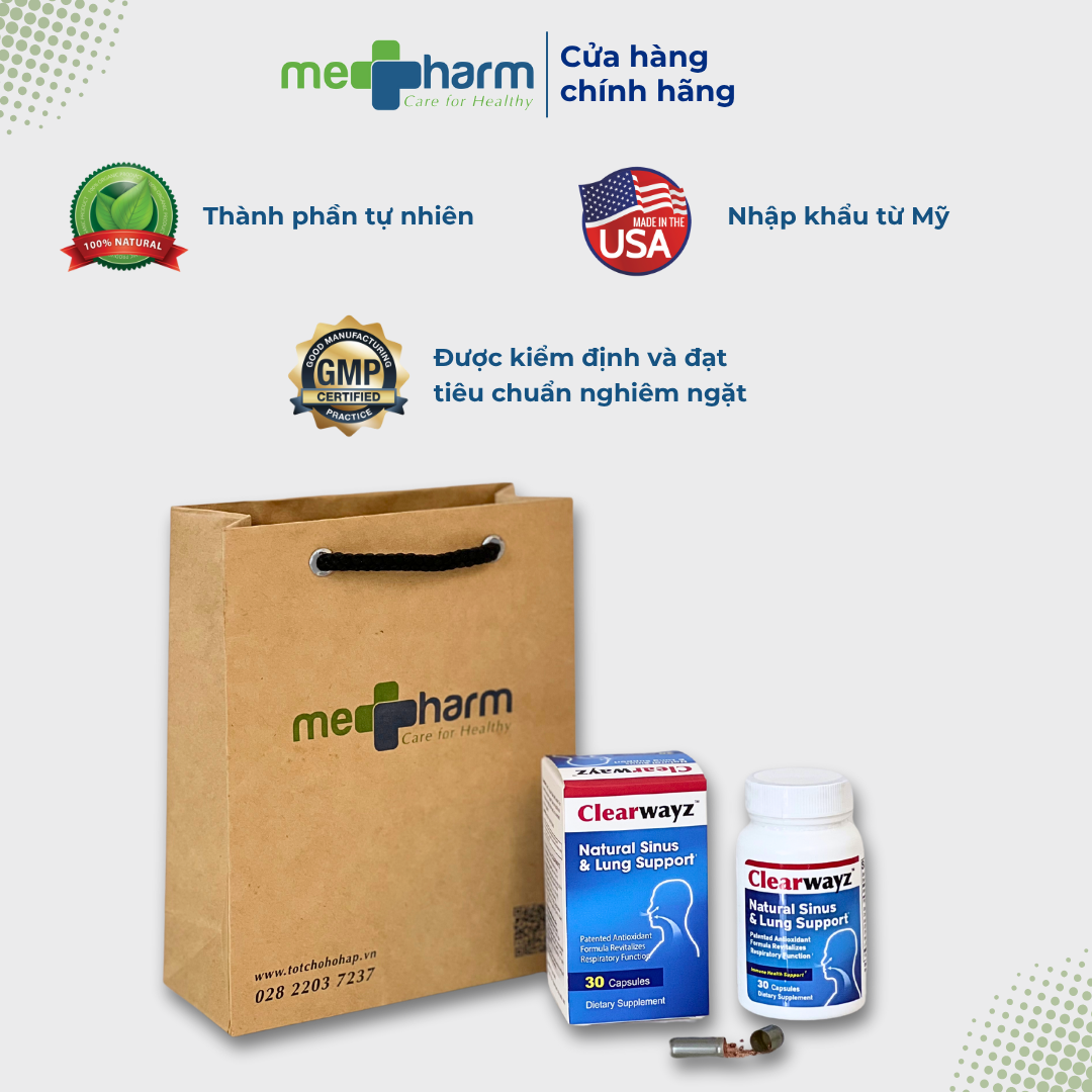 Clearwayz là thực phẩm bảo vệ sức khỏe đến từ Hoa Kỳ, được thiết kế đặc biệt để hỗ trợ tăng cường sức khỏe đường hô hấp một cách chủ động. Với công thức phối hợp nhiều dưỡng chất sinh học và chiết xuất thực vật chuẩn hóa, Clearwayz không chỉ giúp chống oxy hóa và tăng đề kháng.