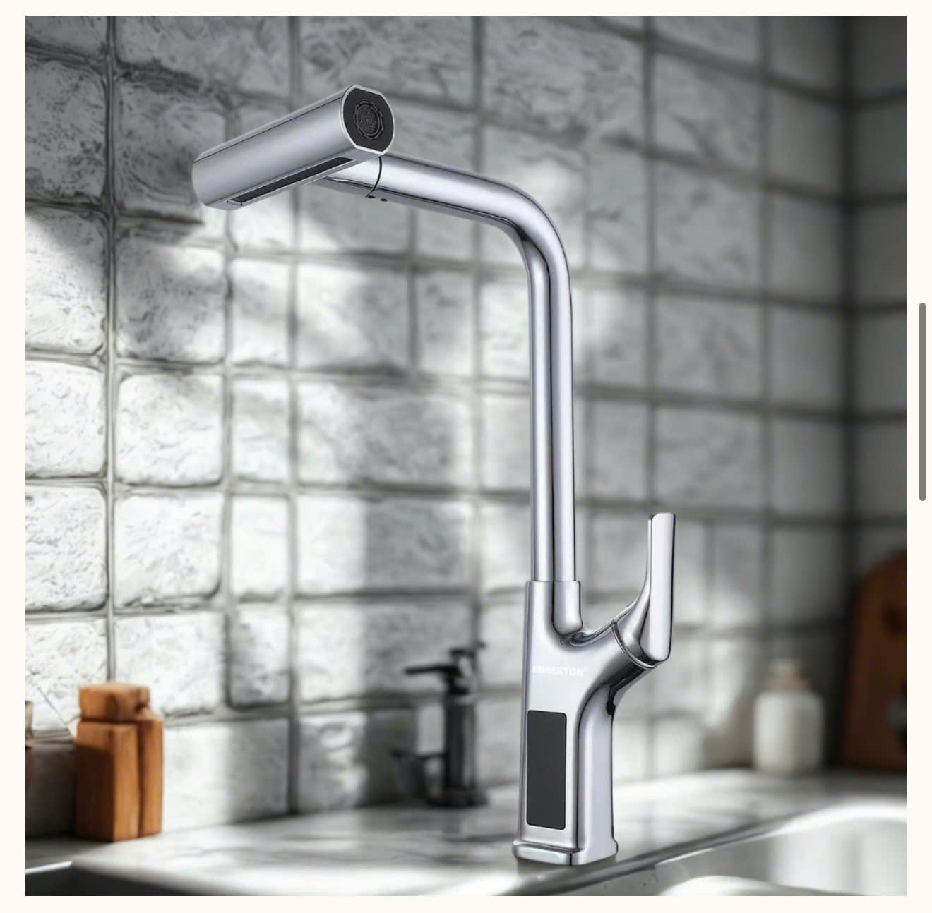 Vòi rửa EB – WS2168 nổi bật với thiết kế chữ T bo góc tinh tế, tạo điểm nhấn sang trọng và hiện đại cho không gian bếp. Kiểu dáng thanh lịch kết hợp chất liệu inox mạ PVD Chrome 5 lớp không chỉ tạo độ sáng bóng mà còn chống trầy xước và dễ vệ sinh vượt trội.