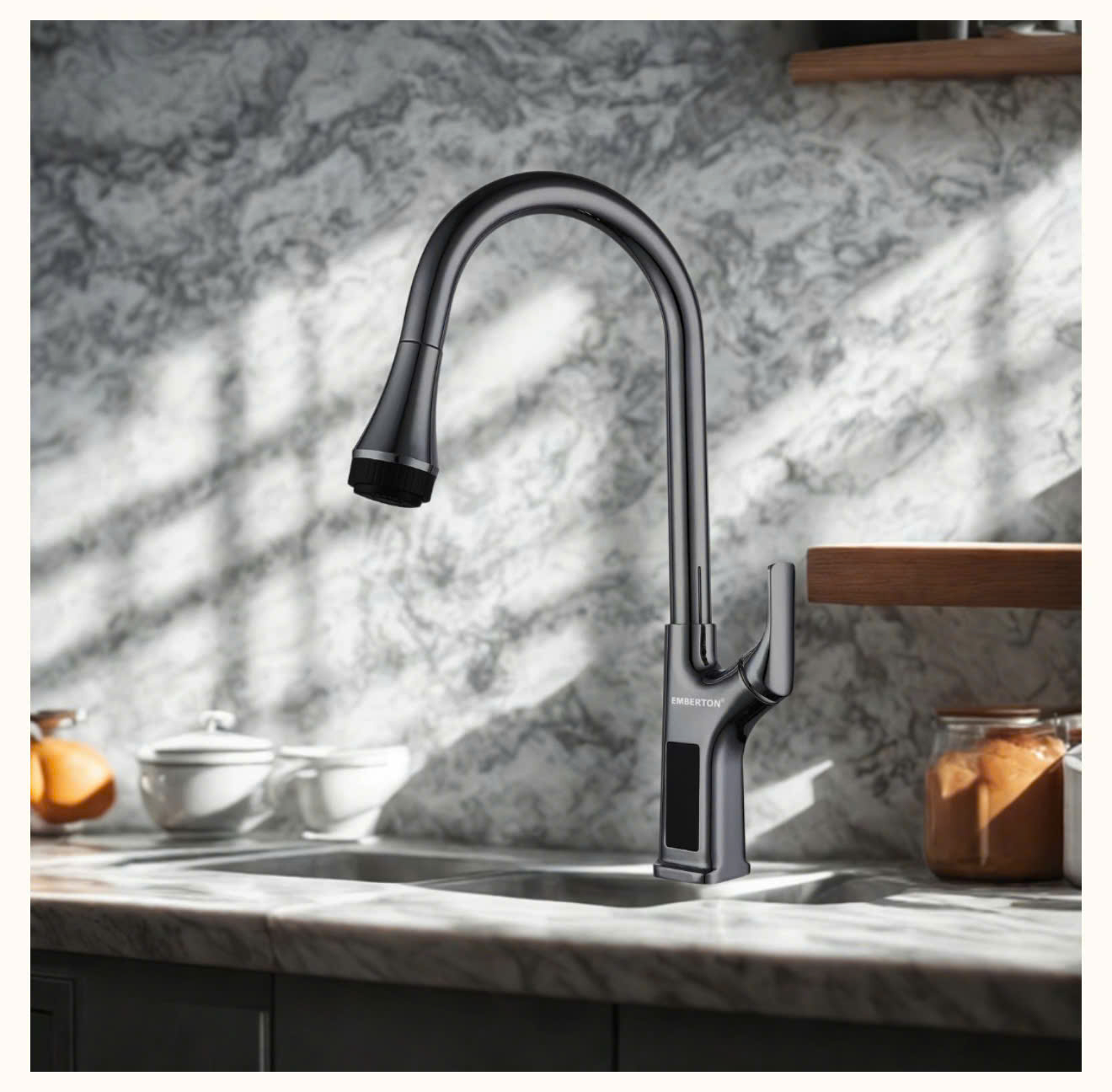 EB – WS2218 nổi bật với thiết kế bo tròn tinh tế, phù hợp mọi phong cách bếp từ hiện đại đến tối giản. Chiều cao thân vòi 460mm, tạo không gian thoải mái khi thao tác. Bề mặt phủ PVD Chrome 5 lớp tăng tính thẩm mỹ và chống trầy xước tối ưu, luôn sáng bóng như mới sau thời gian dài sử dụng.