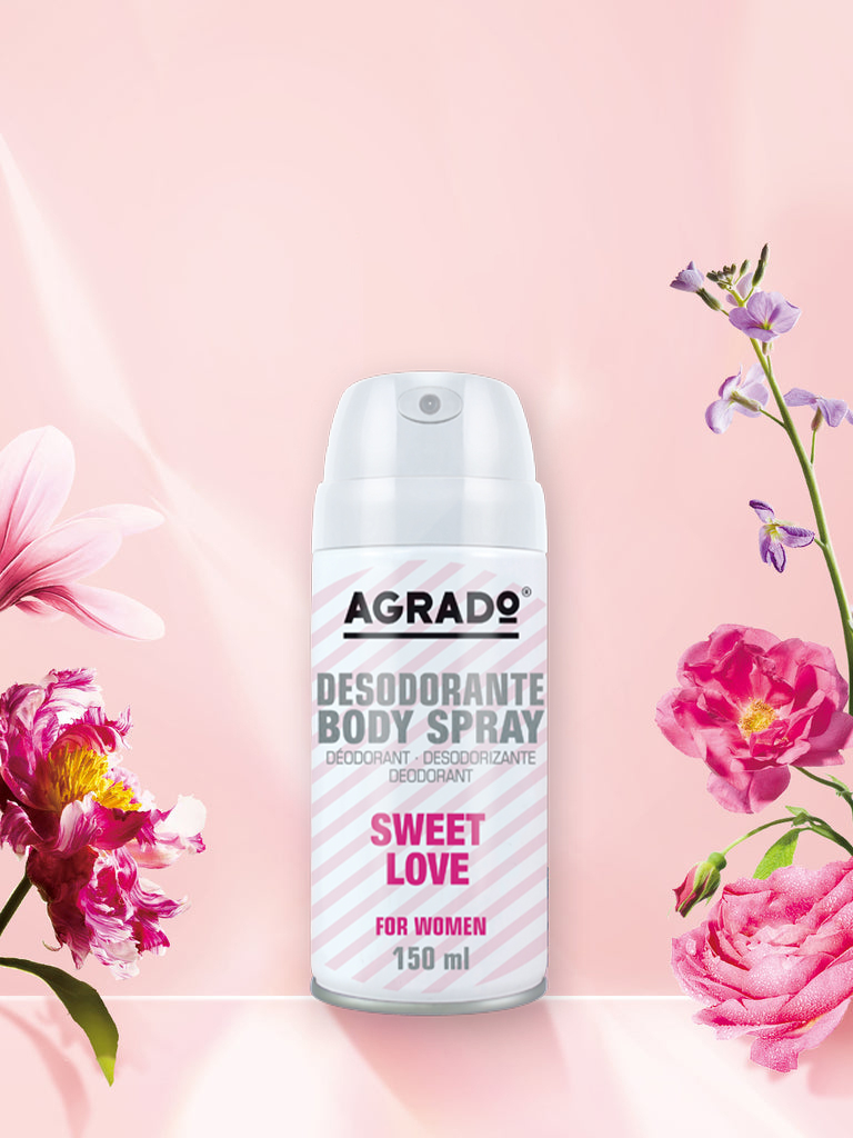 - Tên sản phẩm: Agrado Sweet Love Body Spray Deodorant / Xịt Khử Mùi Body Agrado Hương Nước Hoa Sweet Love